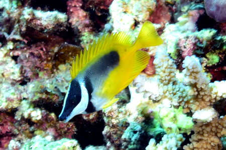 地味な魚というイメージが先行しがちなアイゴたちにも、亜熱帯の海ともなると鮮やかな装いの種類もいる。
