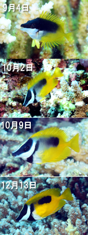 世にヒフキアイゴチビターレの画像は多くとも、同一個体の成長を追った様子などそうそうないんじゃなかろうか…。