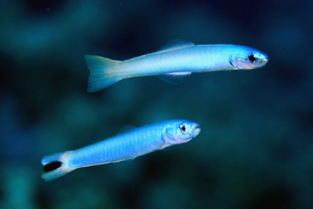 青く細長いダートゴビー系は、幼魚の頃から若魚の頃までは可能なかぎりの数で集団で暮らしており、その社会にはいわゆる「ヘイト」は無いから、若いうちは種を問わずひとつのグループになっていることが多い。