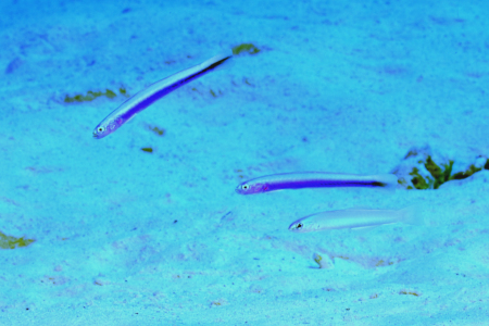 毎年初夏くらいになると、砂底には細長く青い系のハゼのチビチビたちが現れる。