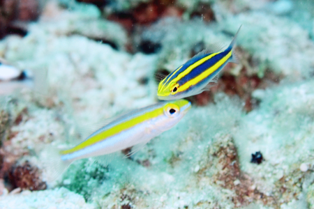 2013年の8月、カメラを携えて潜っていたら、見たことがないイトヨリダイ系の幼魚らしき魚に出会った。