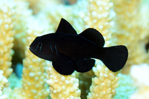 サンゴの枝間に暮らすコバンハゼの仲間たちは、同じくサンゴの枝間を住まいとするダルマハゼの仲間たちがけっして住むことがないミドリイシ類のサンゴを住処にしている。