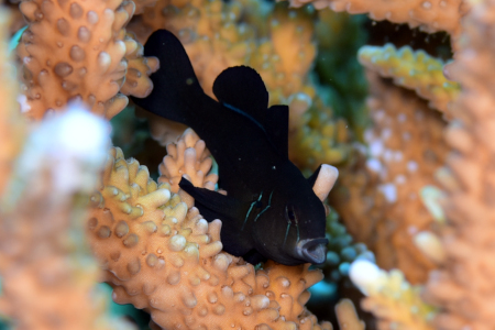 ただ、浅いところでいつでも会えるのはありがたいものの、よく見ると目元やエラのあたりのブルーのラインが美しいとはいってもとりたててカラフルというわけではなく、というかむしろ真っ黒クロスケなので注目度は限りなくゼロに近く、これまで「コバンハゼが見たい!」というヒトに会ったことはない。