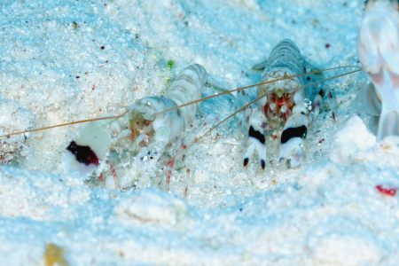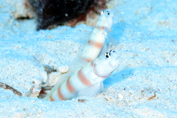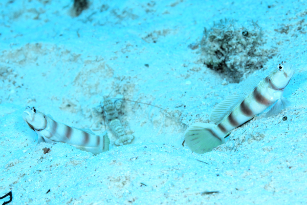 そんなミナミダテハゼたちは、もっぱらニシキテッポウエビやコシジロテッポウエビと共生している。