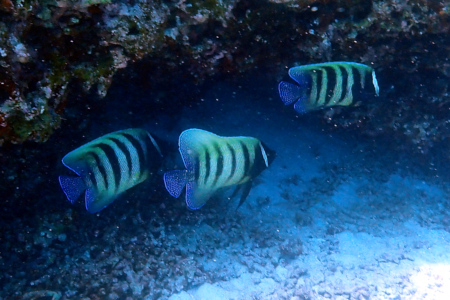 ロクセンヤッコが3匹でいるところなんて、初めて観たかも…。