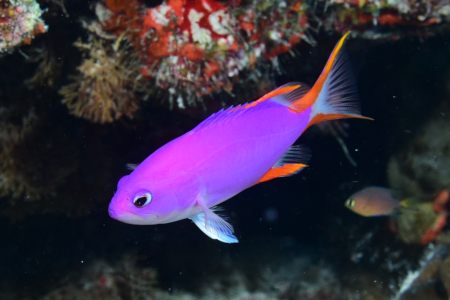 そのサイズといい色合いといい、知らなければ新種のハナダイ類と思ってしまうかもしれない。