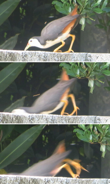まったく無警戒でのんきにブロック塀上にいたシロハラクイナだったのに、ワタシがアタフタとカメラを向けてしまったものだから、直ちに警戒態勢に入って塀の向こうに去ってしまった…。