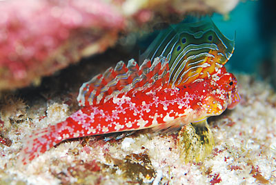 カエルウオなんかとは違っておちょぼ口なので、これで精一杯のアクビらしい。 見ている間に、何度もヒレを全開にしていた。 で、ようやくシャッターを押せたものの、
