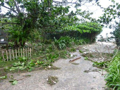 いやあもう、すごかったっすよ、今回の台風は。 これで夏の台風のように「ゆっくり」とか「ほとんど停滞」とかだったら、おそらく島中の家が無くなっていたことだろう。 幸い、風のピークは1時間半ほどで、午後11時過ぎには「ピタッ……」といってもいいくらいに風はおさまった。 夜が明けると、被害の全貌が明らかに。