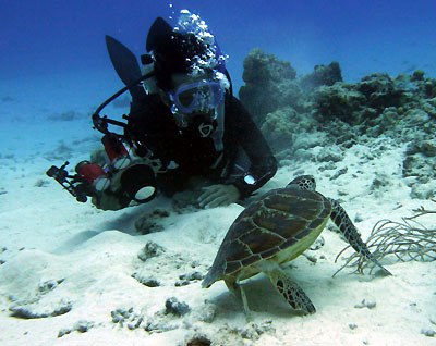 はては体験ダイビングのゲストにまで、その姿を披露してくれた。