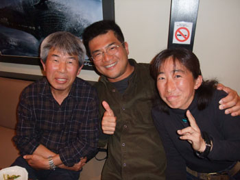 ご存知、ミスター杉森!! この宴席上、例によってうちの奥さんは、他のすべての人がついていっている話題に、1人だけ、まるで違うテーブルに座っている人であるかのごとくついていけてないぶりを発揮。 「いやあ、今の話を聞いたら、なんか正恵さんだぁ!って気がしますねぇ!!」 そうなんですよ、皆さん!! ちなみに左のアンちゃんはフィリピンはリロアンのガイドさんだそうで、この日たまたま別席で飲んでいたのだけれど、なんとなんと、彼はクロワッサンがスタッフを募集していた6、7年前、電話にて申し込んだところ、あっさり断わられたのだという。 「男性でした!!」 俺じゃん………。 まぁ、その後の彼の人生を見ても、彼はうちに来なくて正解だったわけで、その際の判断は間違ってはいなかったのだろう。 そんな宴席で、この人たちも全開!!