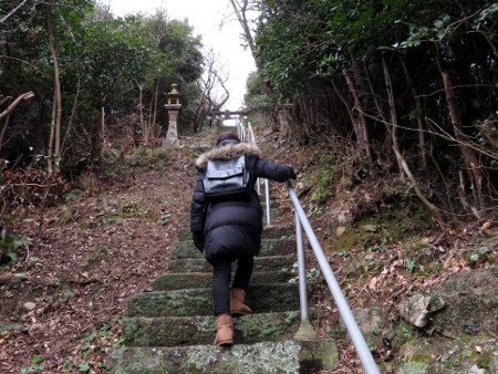金刀比羅さんと同じくらい高いところが好きなオタマサは、ヤデウデシヤとばかりに階段を行く。