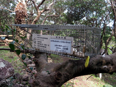 日本全国津々浦々で帰化してしまい害獣になっているタイワンリス。 帰化してしまったほとんどすべての原因は、飼育していたモノが逃げたか放たれたかしたものだそうで、福江島でもやはり、鬼岳山麓のリゾート施設で飼われていたものが逃げ出したか放たれたりして、その後かなり個体数を増やしてしまい、五島のシンボルでもある椿の樹をかなり傷つけたりしているのだそうな。 最盛期に比べると近頃では個体数は減ったというから、おいそれとは見られないのかもしれない。 遊歩道からちょっとはずれ、海岸に降りてみた。