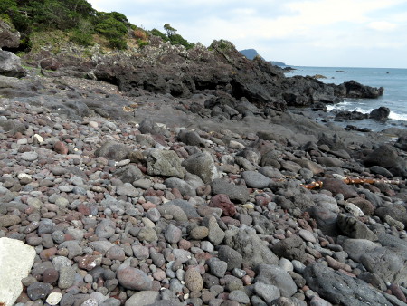 このゴロタ石もほとんどすべてが溶岩だ。 こんだけたくさんあれば、武家屋敷のこぼれ石を揃えるのにも苦労はしなさそう。 そんな溶岩に混じって、こういうものが打ち上げられていた。