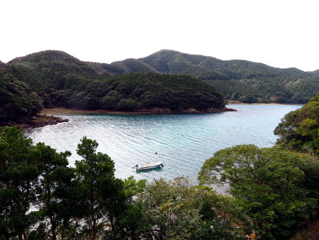 今のように流通が発達した世ではなかった頃には五島内で消費せざるを得ず、そうなるとたくさん獲れるミズイカはおそらくとっても安かったに違いない。 ところが今やすっかり高級食材になったミズイカは、現地でもやはり高級で、スーパーなどで見かけた一夜干しもやっぱり高かったから思わず買い控えてしまった。 全国津々浦々の魚介をどこでもいただける流通の世の中は便利だけれど、産地でも高くなっちゃったら、それはそれで良し悪しだなぁ…。 リアス式海岸で入り江が折り重なるように並ぶ福江島の海辺は、ただそこに船を置いておくだけで大丈夫そうな天然の良港だらけで、どこを切り取っても絵になる美しい入り江の風景が続く。