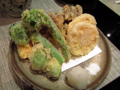 加賀蓮根にコゴミ、そして舞茸と蕗の薹といった山菜尽くしの天麩羅盛り合わせ。 昔は天麩羅といえば海老だイカだ穴子だってところで盛り上がってた僕だけど、四十を越えて随分経ち、そろそろ五十の坂の入り口が見えてきた今、こういった山菜の天麩羅を体が求めるようになっている自分に気づく。 そしてまた、沖縄ではなかなか味わえない本土風の天麩羅の食感が新鮮だ。 この2品で火に油系を求める気が済んだので、再びしっぽり日本酒メニューに。 まずはこれ。