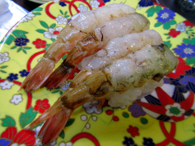 のっけから「さわら」すなわちカジキ、そしてバイ貝。 一人で来ていたらそれぞれ2貫ずつ食べなきゃならないところながら、二人でいると1貫ずつでいいから、リミットまでにより多くの種類をいただくことができるので便利だ。 そうはいってもバカのように食べまくるつもりもないので、早めに食べたいモノに突入しておこう。