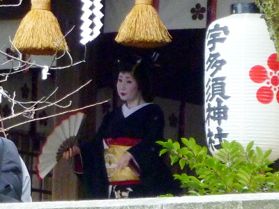 おお、芸妓haaaan!!! オジサン、場所を教えてくれてありがとう! 金沢のヒトたちは、運転は荒いけど気は優しい。 最後はカチャーシーのような景気良い音楽の踊りで終了。 「鬼は〜〜外ッ!福は〜〜〜内ッ!!」 という掛け声が。 豆まきが始まったのだ。 この場にいながらスルーするのもなんなので、再び宇多須神社へ。 おお、芸妓さんたちが豆まきをしている!!