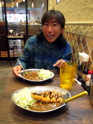 カレーのチャンピオン近江町市場店。 近頃は全国各地でご当地カレーがもてはやされているけれど、金沢カレーも、近年いくつかのチェーン店が東京に進出したことも手伝って、そのブランド価値を急速に高めているのである。 そのため金沢には、「元祖」、「秘伝の」、「昔ながらの…」などというカレーの謳い文句が飛び交っており、すでにカレーの聖地となっている感がある。 ここ近江町市場の地階にも、カレー屋さんが2店舗入っているのだ。 各本店を巡る時間はなかったキレンジャーとしては、このチャンスを逃す手はない。