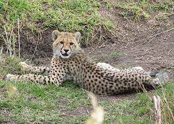 チーターはヨンさまだった 至福昼寝をしたあとは、午後のサファリが待っている。 午後のドライバーもヘンリー&デビットコンビだった。同乗者は、Nさんご夫妻のほかに、今日ご到着のKさんが加わった。 今回がデビューとなるKさんは、昨日の我々同様、謙虚になんでもOKという返事だったが、せっかくなら、というノリのNさんは違った。 「ジャッカル&ハイエナ!」 …し、しぶい。 「…… difficult.」そう応えるしかないようだった。でも、明日遠出すれば観られるかもしれない、とも言っていた。 僕はもちろん迷わず応えた。 「Standing lion!!」 だって、まだ一度としてライオンが立っている姿を見たことないんだもの…。 「OK,ハイエナ&ジャッカル、&スタンディングライオン!!」 ランクルは今日も陽気に発進した。 今日も道々にいるマサイの牛たちが、水場で水を飲んでいた。