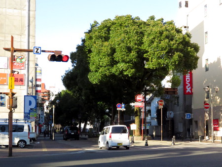 フェニックスだろうか。 大きな木は椰子だけではなく、追手筋とクロスするグリーンロードという道には、クスノキの巨木が中央分離帯で茂っている。