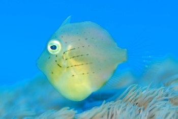 撮影当時は一期一会的その重大なジジツに気がついておらず、ふーん、カワハギ類のチビね…とばかり、テキトーにパシャパシャと撮っただけで終わってしまったかも。