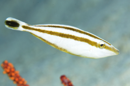 オトナになってもせいぜい15cmほどのカワハギの仲間で、オトナはもっぱら、一般的な健全ダイバーが普通は立ち入らない深い水深を、暮らしの場にしているという。