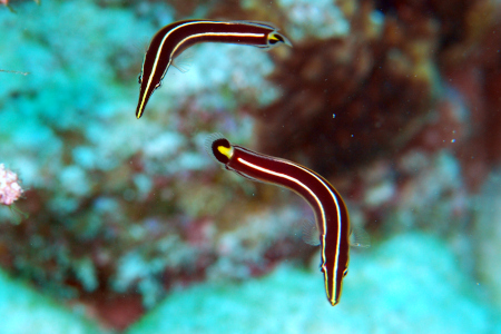 98年の白化以前は、一つのガンガゼ類に何匹も揃ってクネクネしているのをよく見かけた。