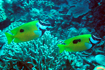 1ペアごとの縄張りが広いためかヒフキアイゴはそこにもあそこにも、というほど個体数が多いわけではないのだけれど、縄張り内にはいつも同じペアがいるから、同じ場所で潜ると同じペアにしょっちゅう会うことになる。
