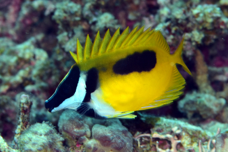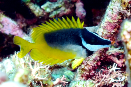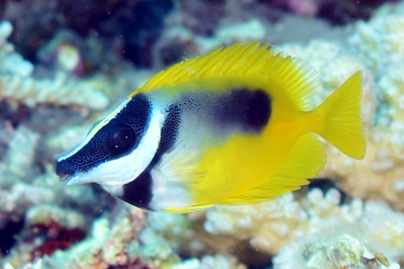 地味な魚というイメージが先行しがちなアイゴたちにも、亜熱帯の海ともなると鮮やかな装いの種類もいる。