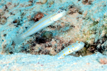 わりと内湾を好むこのハゼが増えているということは、水納島の砂底がジワリジワリと砂泥底化している…ということの証左なのかもしれない。
