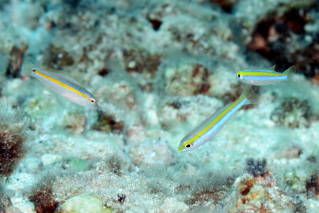 2013年の8月、カメラを携えて潜っていたら、見たことがないイトヨリダイ系の幼魚らしき魚に出会った。