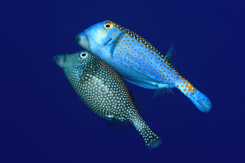 四半世紀以上昔、我々の同級生が結婚するに際し、某有名海洋写真家が贈った写真がたしか、そのクロハコフグの仲睦まじい産卵エスコートシーンだったような記憶が……。