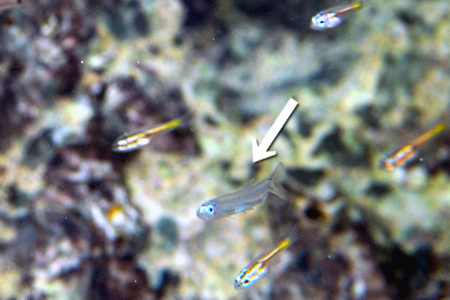 とはいえ同定にはまったく自信が無いので、ここでは暫定的に「?」マークをつけておくとともに、「光物たち」ではなく「その他の魚たち」のカテゴリーに属してもらうことにする。