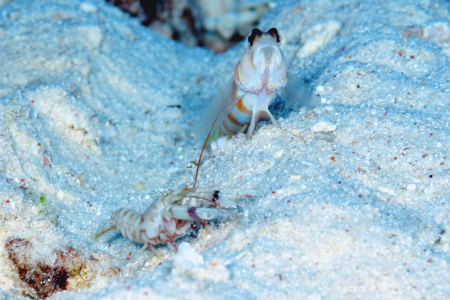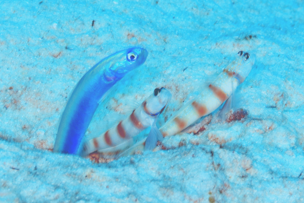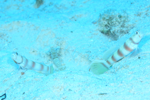 そんなミナミダテハゼたちは、もっぱらニシキテッポウエビやコシジロテッポウエビと共生している。