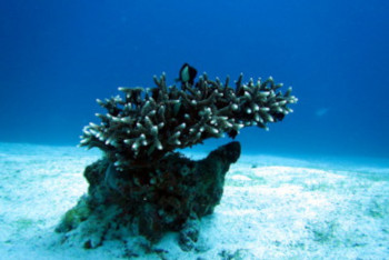 ストロングな台風が去ったあと、それまでただの砂底だったところに、ポツンとひとつサンゴが出現した。