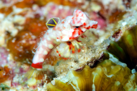 水中では赤色が吸収されてしまうため、肉眼で観ていると、ミヤケテグリはただの地味な小さい魚でしかない。