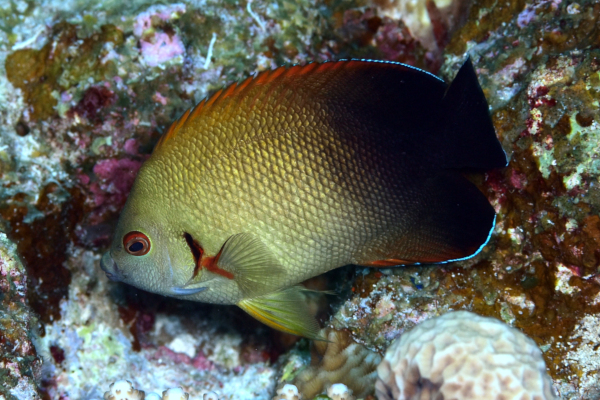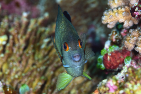 とはいえこのナメラヤッコはアブラヤッコ属のなかでも群を抜いて地味だから、わざわざこの魚観たさにダイビングをしている、というヒトはまずいないだろう。