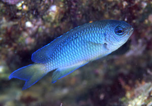 小さく可憐なカラフル熱帯系スズメダイ類のなかでは、ソラスズメダイは最も低温に適応しているのだそうな。
