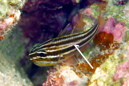 …と思いきや、お馴染みのキンセンイシモチをはじめ、アオスジテンジクダイやクロホシイシモチなど、有名どころが所属している「スジイシモチ属」の模式種でもある最古参メンバーだった。