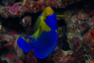スミレヤッコの青い部分と黄色い部分の配色には個体差があって、こういう感じになっているものもいる。