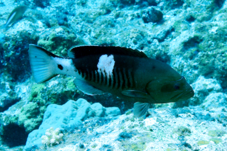 ところで、幼魚カラーからは想像もできない「タテスジ」ハタという名前、なるほど、オトナになると縦筋が…