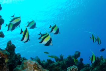 砂地のポイントではさらに少なく、せいぜい10〜20匹くらいの群れがリーフ際で観られるくらいだ。