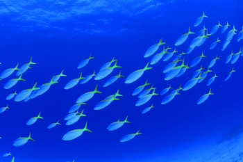 ただし小笠原やモルディブあたりで観られるような、とんでもなく密集隊形の巨群というわけにはいかず、50匹くらい群れていたら「おお…」っていうくらいの数でしかない。