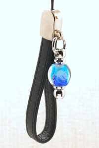 本革ベルトにくらげ玉を添えた、重厚感のあるちょっぴりシブめのストラップです。
