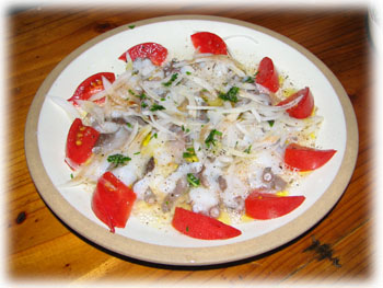 生タコのごま油風味。 この2品がタコゲット時の我が家の定番で、すでに味をしめておられるゲストとなると、海中でタコを目にするや気持ちはすでにカルパッチョもしくはごま油和えになっている。 その場にちゃぶ台があれば間違いなく星一徹化するだろうことは想像に難くない。ヘタしたらタコではなく、怒りに我を忘れたゲストによって僕が絞められるかもしれない。 いわばタコを獲るのも命がけなのであった……。 |