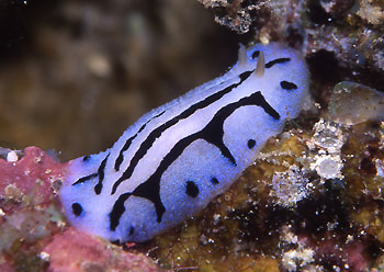 見かける場所もシロウネイボウミウシと同じで、岩場のポイントの船の下あたりの岩肌。 動かないし見た目もパッとしない。どうせだったらタテヒダイボウミウシなみにジャイアントだったら面白いのに、せいぜい2センチそこそこなうえにシロウネ…よりは目にする回数も多い。
